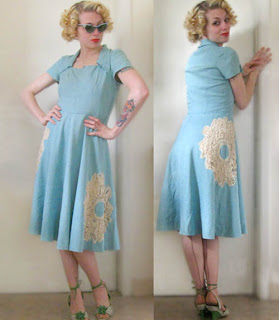 Nice! Do you think the doilie is original to the dress or sewn on later when its owner decided it needed a new look? I've had a couple of doilie embellished dresses in the past and I always wondered if they were actually manufactured that way or the product of a creative fifties fashionista.